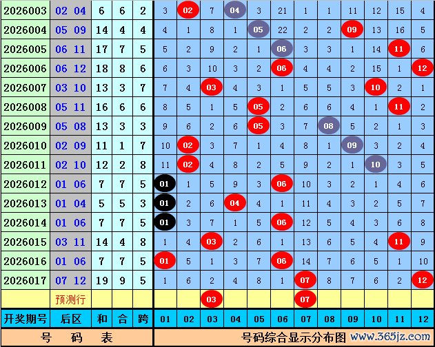 后区号码分析:第018期历史同期开奖中,后区两码全小开出2次,一大一小开出16次,全大开出1次,本期后区预计出现一大一小奖号,参考号码03、04、06、07。