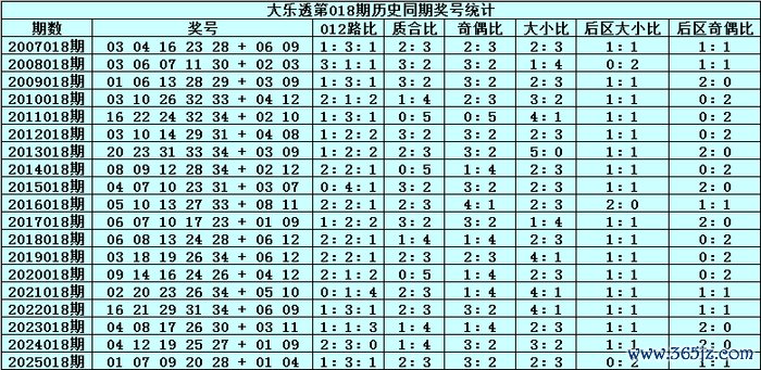 体彩大乐透第2026018期历史同期开奖号码分析: